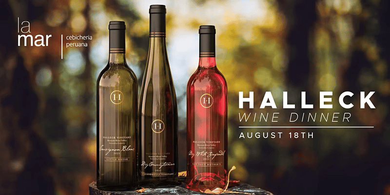 This Thursday, August 18, 2022 at 6pm La Mar on The Embarcadero in San Francisco will be hosting a special wine dinner with Halleck Vineyard.