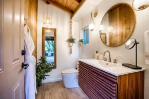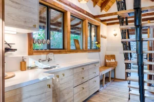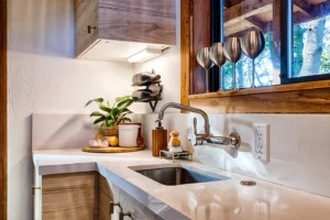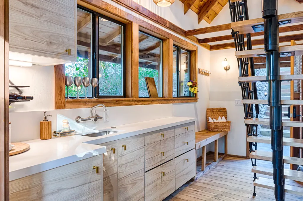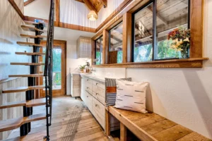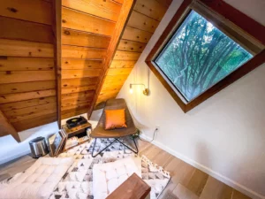 This lodge is designed to unplug, relax, and soak in the simple life on a vineyard. Our brand new full kitchen has everything you need to unwind for as long as you need. Please be aware, to access the lodge and bedroom loft, you’ll need to go up and down stairs.