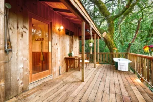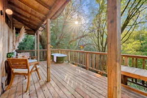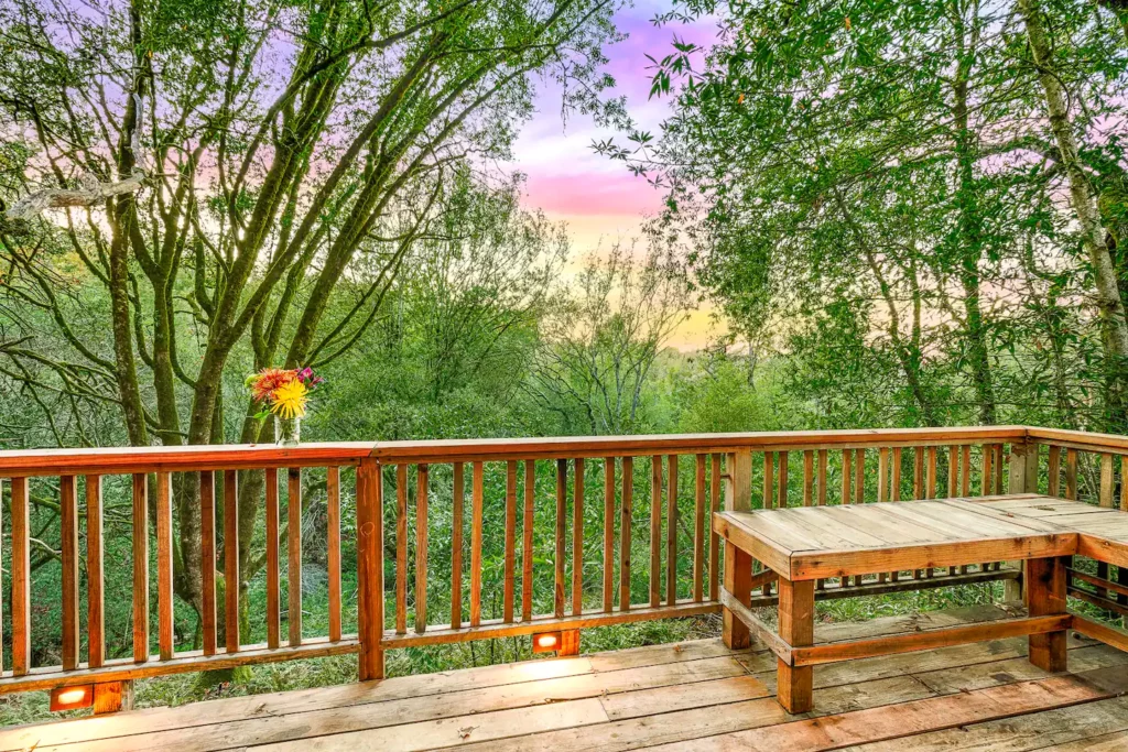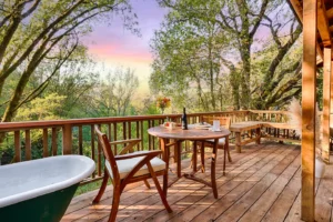 While staying at the lodge, join us up at the main house for a full wine tasting of Halleck Vineyard wines paired with local cheeses crafted for the best tasting experience in Sonoma County ($65/person). After the tasting, go down to the lodge and soak in the picturesque views of the private untouched forest under our heated back deck.