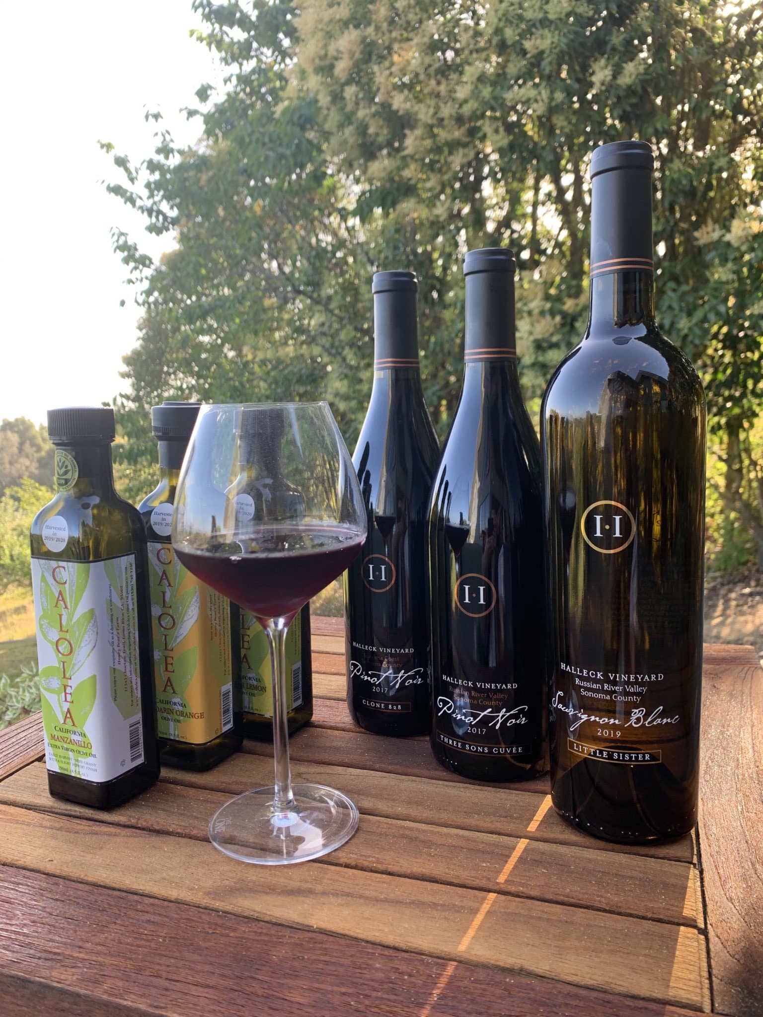 All three virtual wine tasting experiences with Halleck Vineyard come with a bottle of Sauvignon Blanc, a bottle of Three Sons Cuvee Russian River Pinot Noir, and a bottle of Sonoma Coast Pinot Noir Hillside Cuvee.