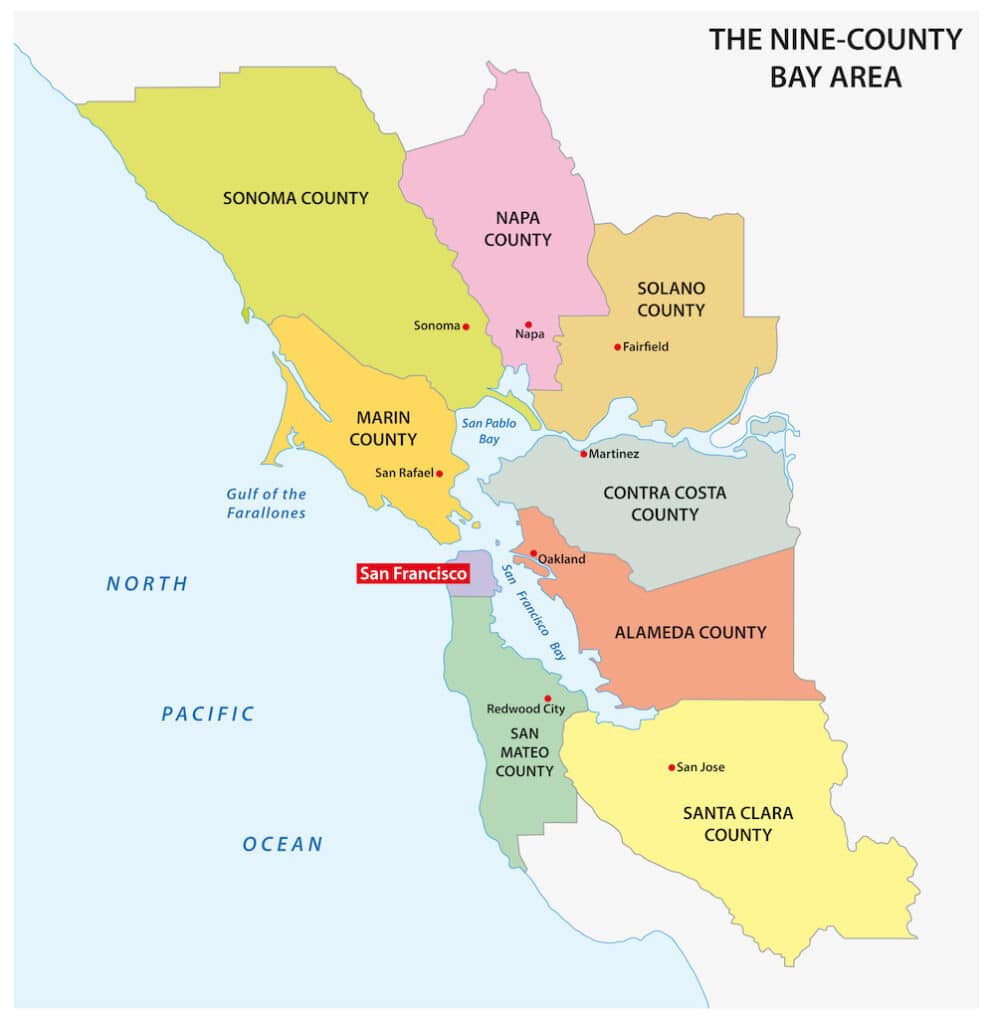 Unless you’re living in the area, the easiest and most economical way for most people to reach Sonoma County is by flying into SFO (San Francisco International Airport) or OAK (Oakland International Airport). Sonoma proper is about 45 miles north of San Francisco and 48 miles Northwest of Oakland, so either way, it’s about an hour’s drive up route US-101 N.