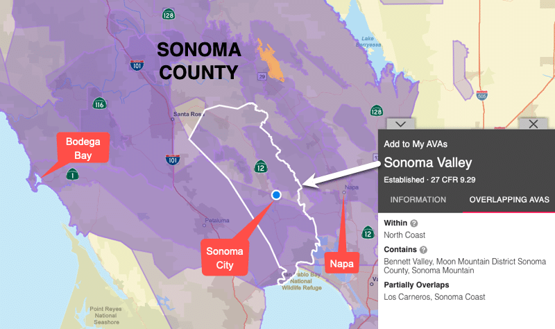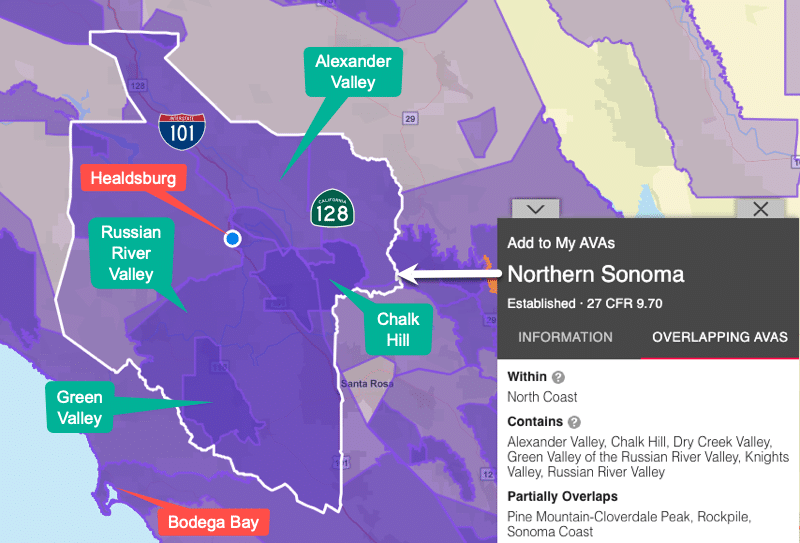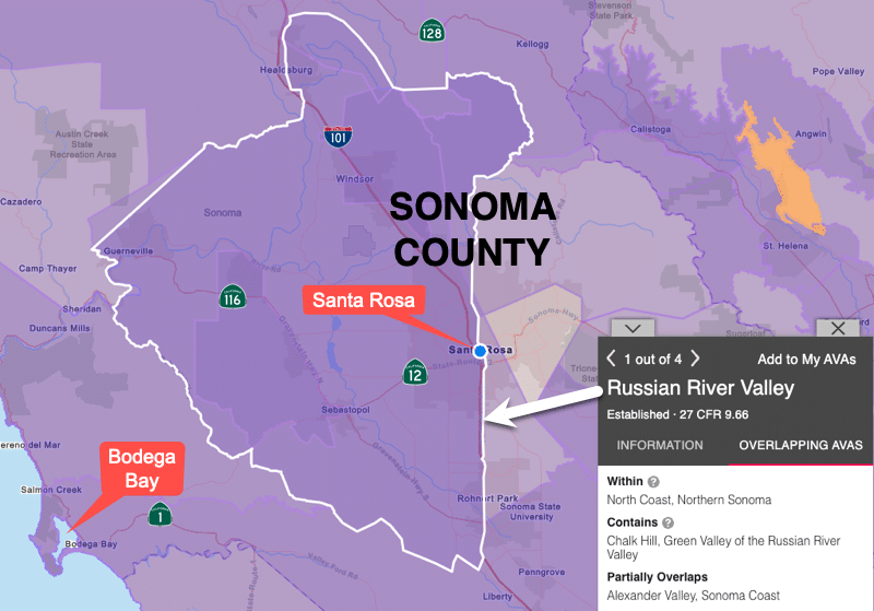 Sonoma County has 19 distinct wine-growing regions or appellations known as American Viticultural Areas (AVAs). When you see a bottle of wine with the place it came from on the label, that’s the AVA. The more specific the AVA, the more desirable the wine.