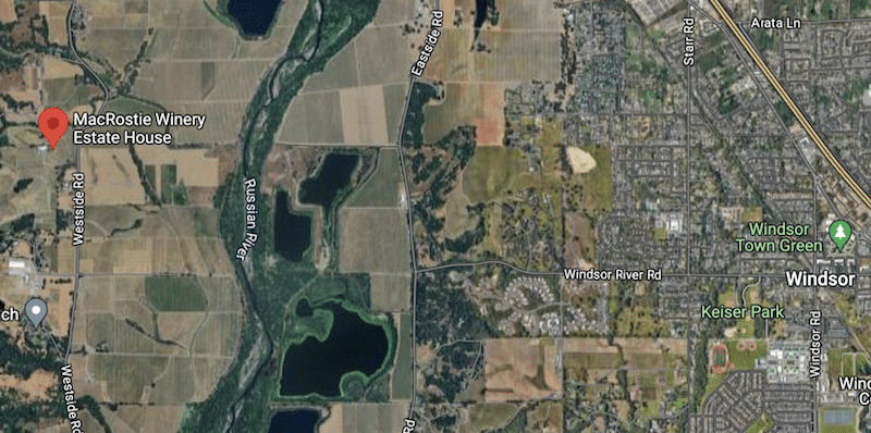 Located just west of the Russian River, and south of Healdsburg, MacRostie Winery is in the Windsor area with vineyards in the Russian River Valley flood plain.