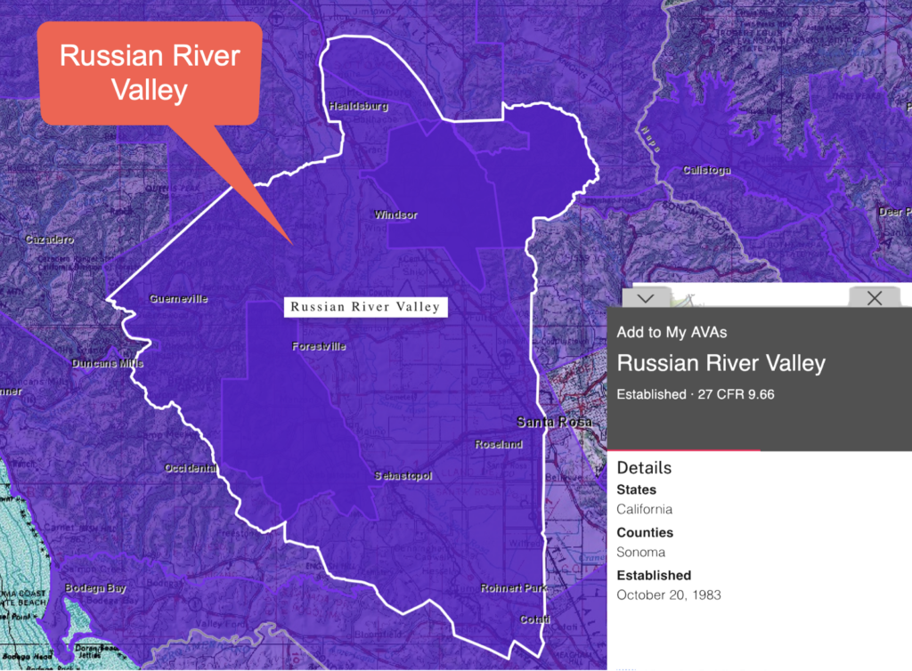 - Sonoma County that includes Russian River Valley