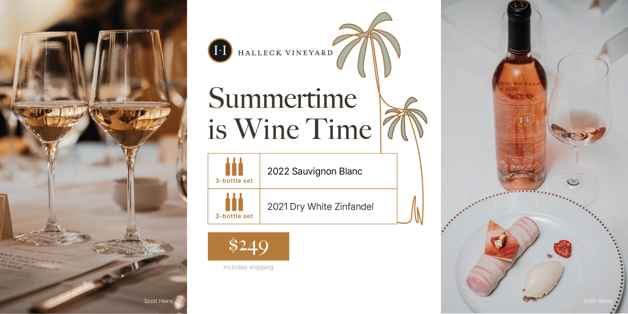 True to French style, the Little Sister Sauvignon Blanc is made like a crisp, but rich Sancerre. It displays classic neutral citrus notes, with a floral nose that hints of sea breeze, with its earthy complement. The delivery yields bright acidity, offering a mid-palate of flinty minerality, a hint of tart passion fruit with pineapple and the long lingering, yet crisp finish for which Halleck Vineyard wines are noted.