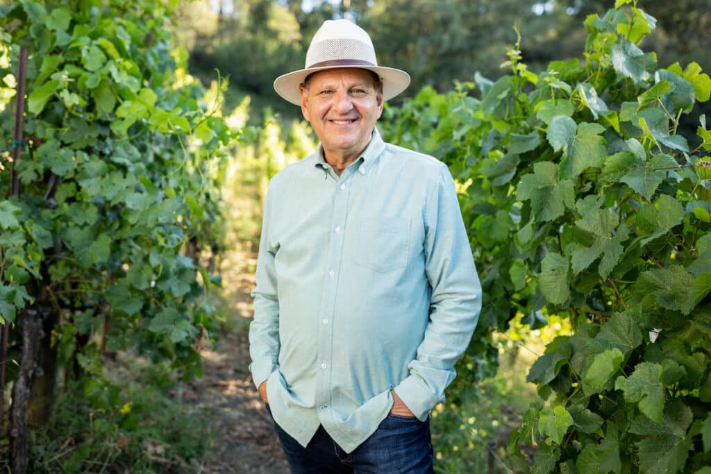 Ross Halleck on the deck of our Wine Lodge surrounded by our estate Pinot Noir Vineyard in West Sonoma County….